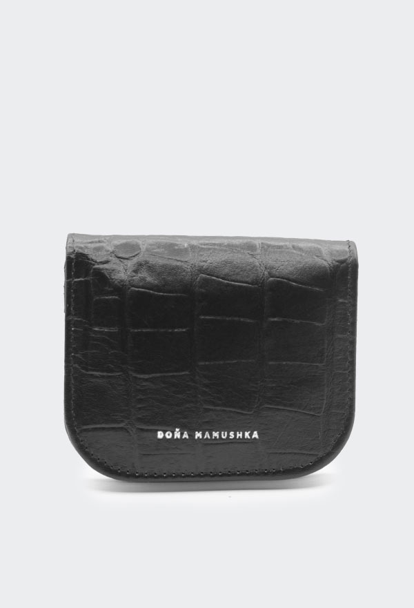 Tarjetero con tapa leticia negro croco