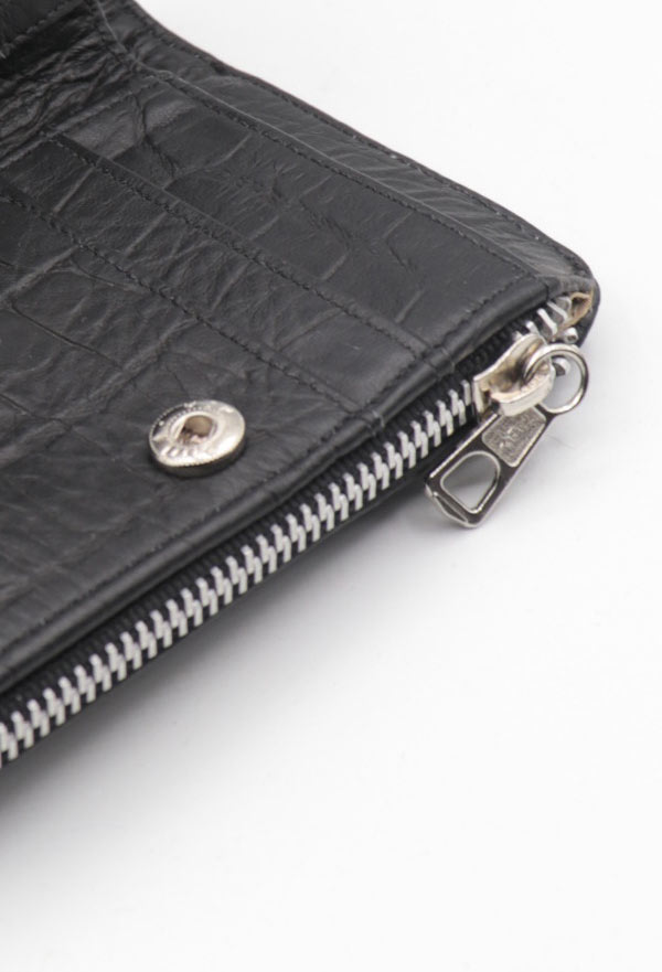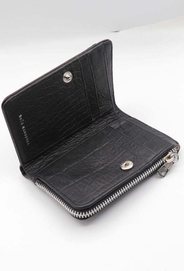 Nuestra billetera mediana kenzy cuenta con 8 divisiones para colocar tarjetas y un cierre metalico para guardar monedas, en el interior tiene una división para billetes.