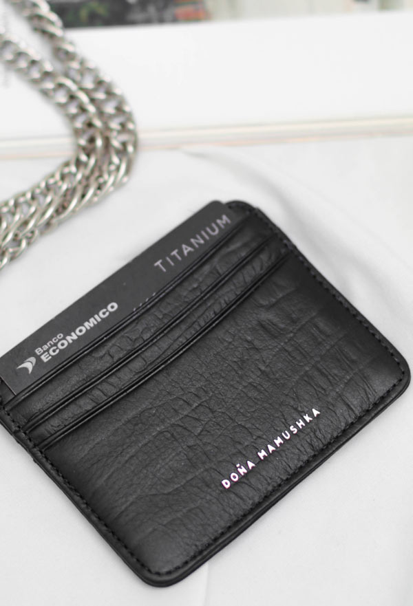 Tarjetero negro croco mate